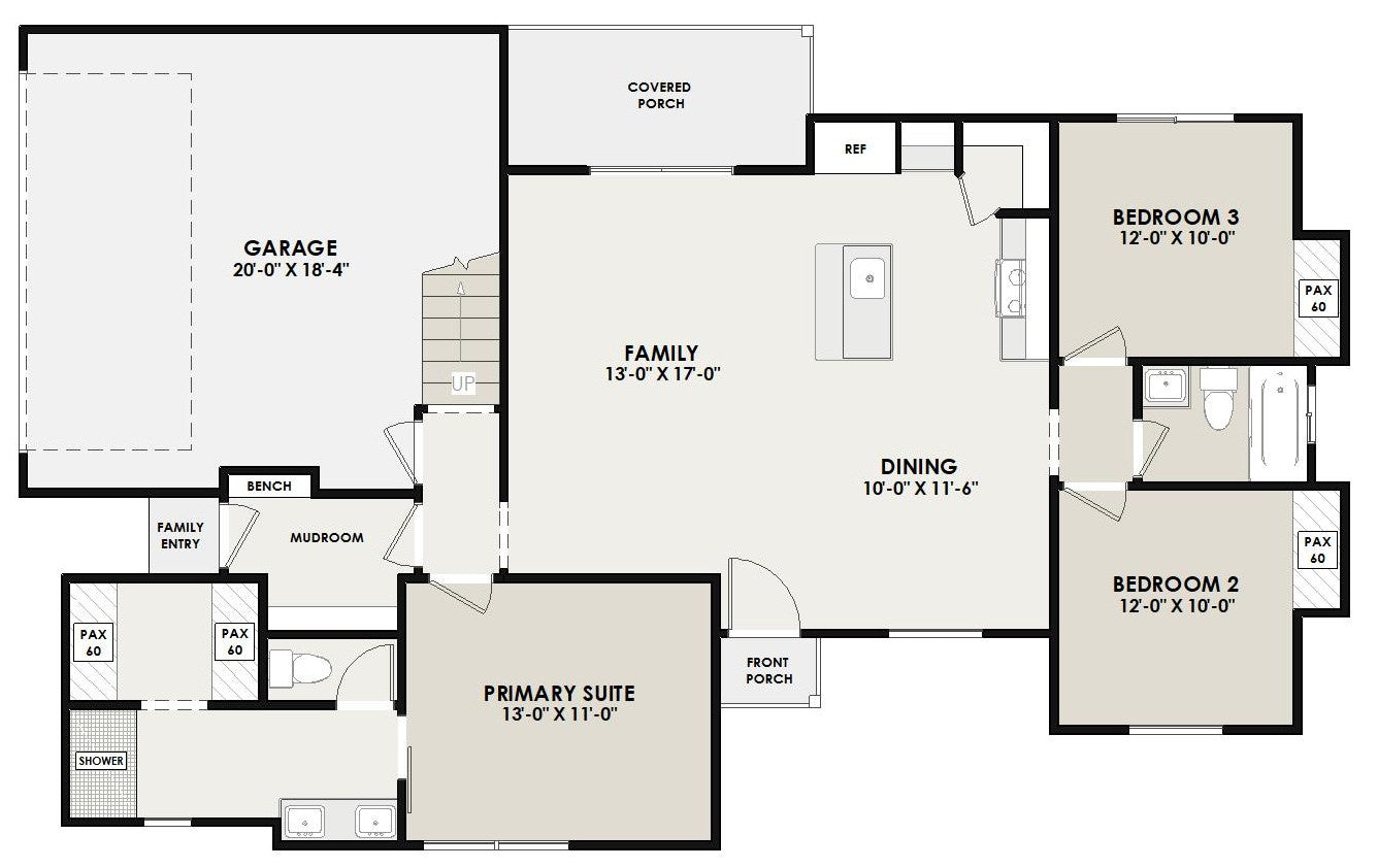 The Rayburn delivers refined farmhouse character with an open, connected layout designed for daily ease. Natural light fills the family, dining, and kitchen core, while the covered rear porch extends everyday living outdoors. The private primary suite offers a calm retreat with dual vanities and walk-in storage, and the rear-entry garage connects through a mudroom built for real life. Every inch is purposeful—beautiful, functional, and easy to live in.